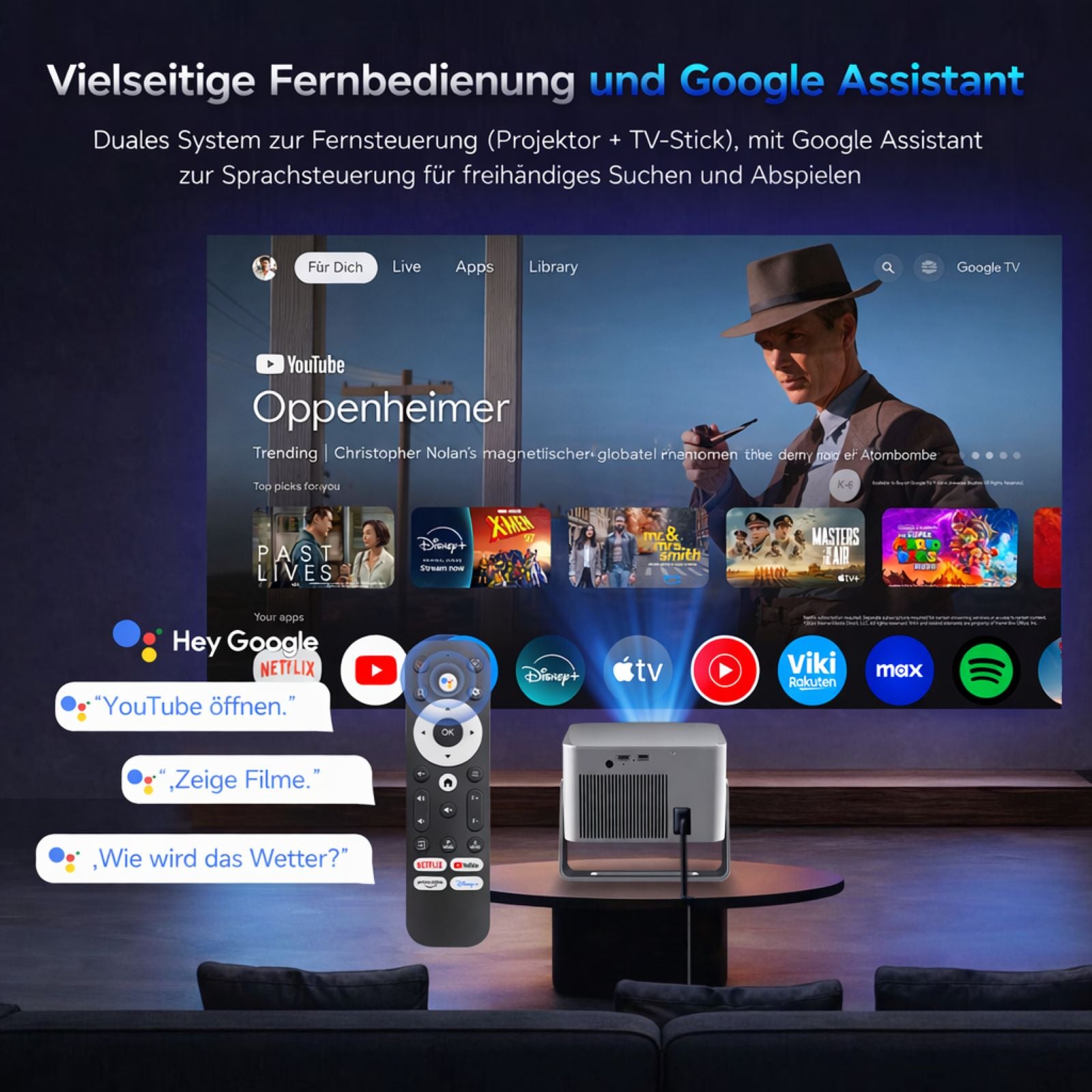 Der HY350 Google TV (HY350GT) ist ein brauchbarer Einstiegs-Heimprojektor für alle, die komfortables Streaming mit Google TV, einen drehbaren Stand-Fuß und ein klassisches 1:1-Projektionsverhältnis suchen. Mit 550 ANSI Lumen eignet er sich besonders für abgedunkelte oder gedimmte Räume.